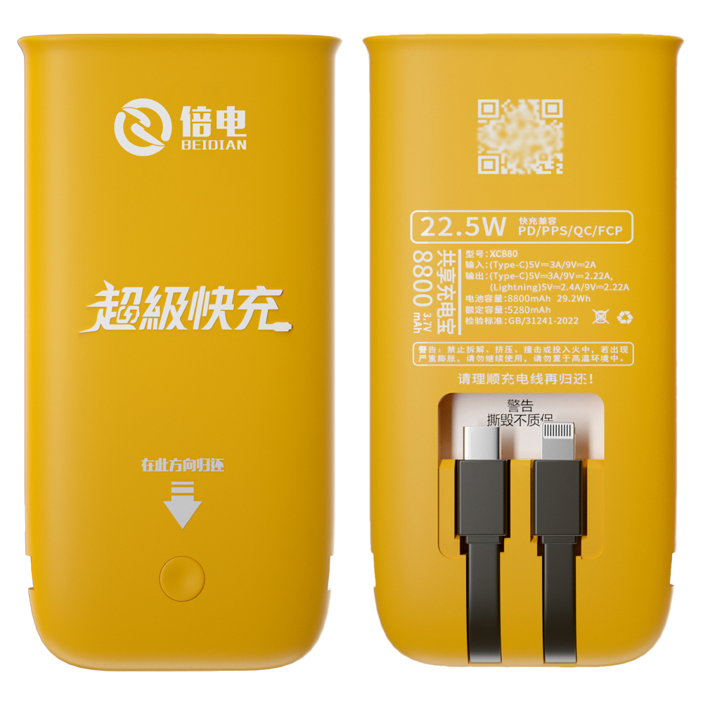 倍电22.5W超级快充充电宝XCB80,是容量、速度、安全与保障的集大成者。它用8800mAh大电芯和全协议快充满足用户核心需求,用3C认证、国标遵循和1500万保险构建坚不可摧的安全信任,再用自建工厂的品质和超长质保兑现对合作伙伴的承诺。这不仅是一款产品,更是一套值得长期托付的移动充电资产解决方案。