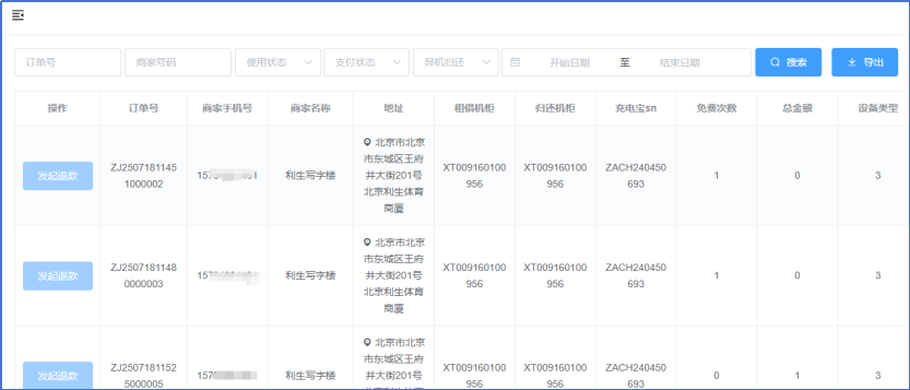 机柜订单增加退款按钮。